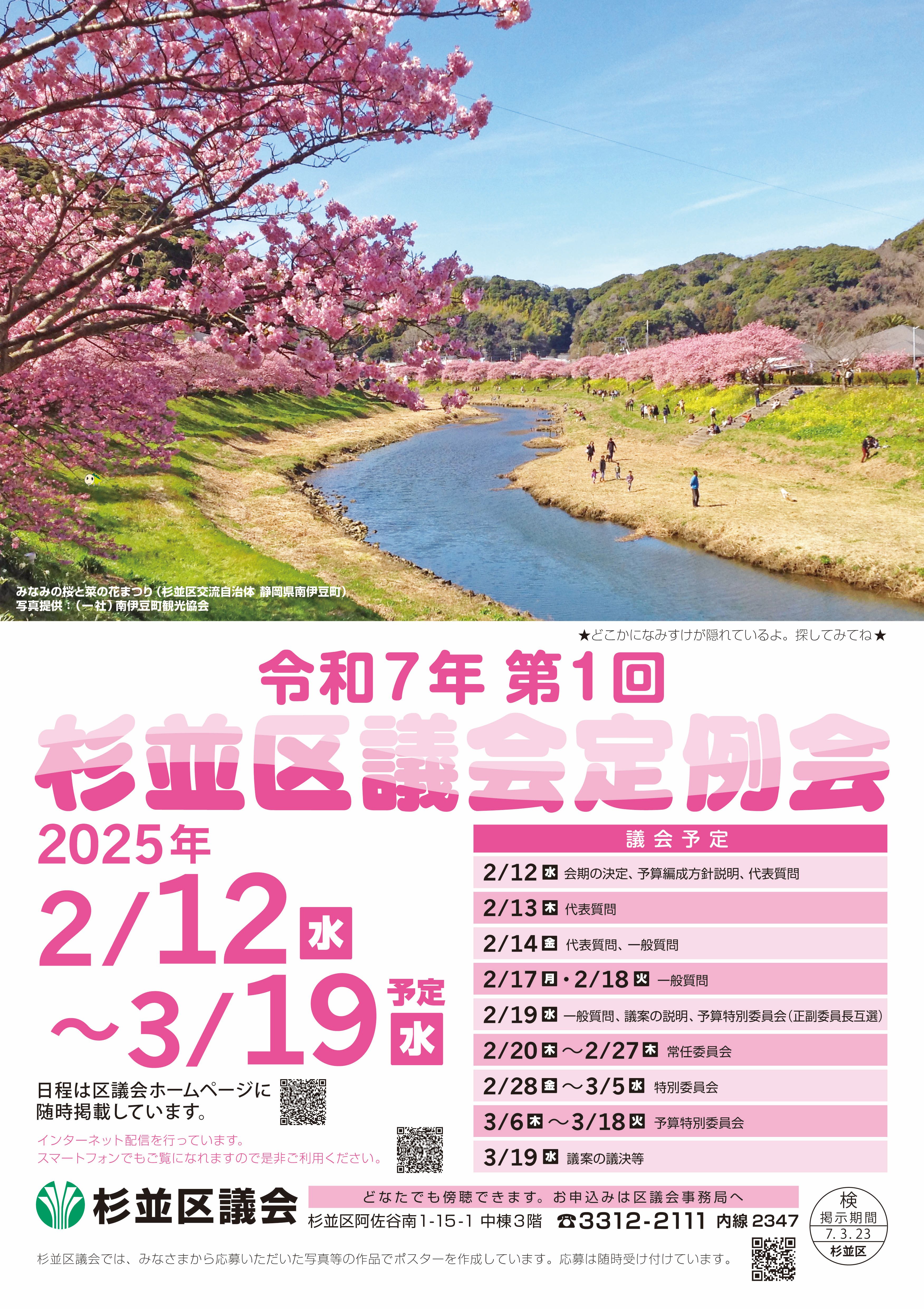 杉並区議会では、身近で親しみやすく、わかりやすい議会を目指しています。広報活動のひとつとして、区議会の開会を区民の皆さんにお知らせするため区議会ポスターを作成しています。