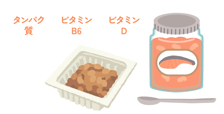 筋肉をつけるために必要な「タンパク質」、筋肉作りをサポートする「ビタミンB6」、筋肉の維持に重要な「ビタミンD」、筋肉の強化・回復をサポートしてくれる「ビタミンC」の4つがあります。
