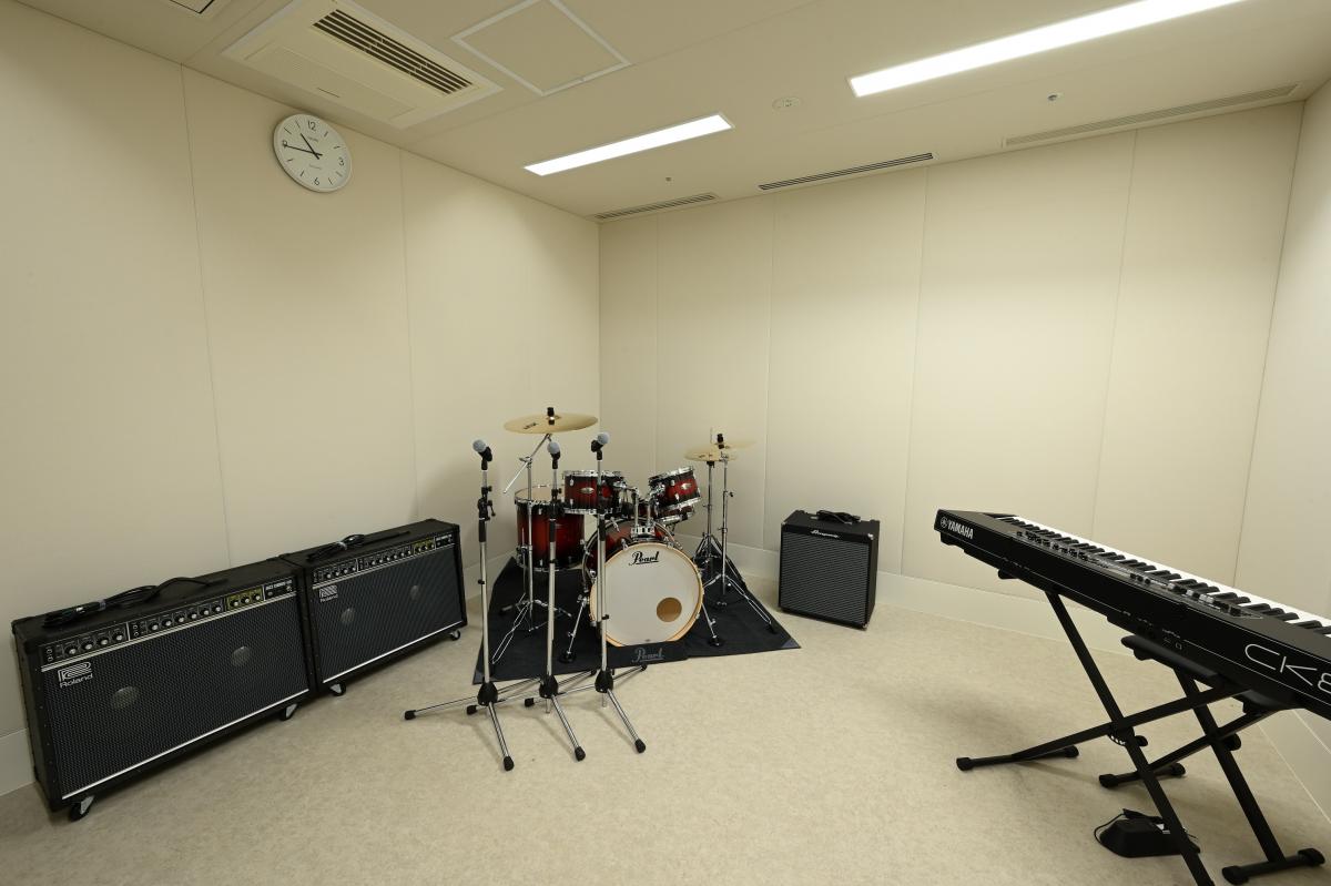 楽器練習室でサックスの練習をしたり、ラウンジで勉強や友達とおしゃべりしたりしています。時間によっては中高生が無料で利用できる貸室があったり優先席があったりと、学生にも優しく気楽に利用できる施設です。