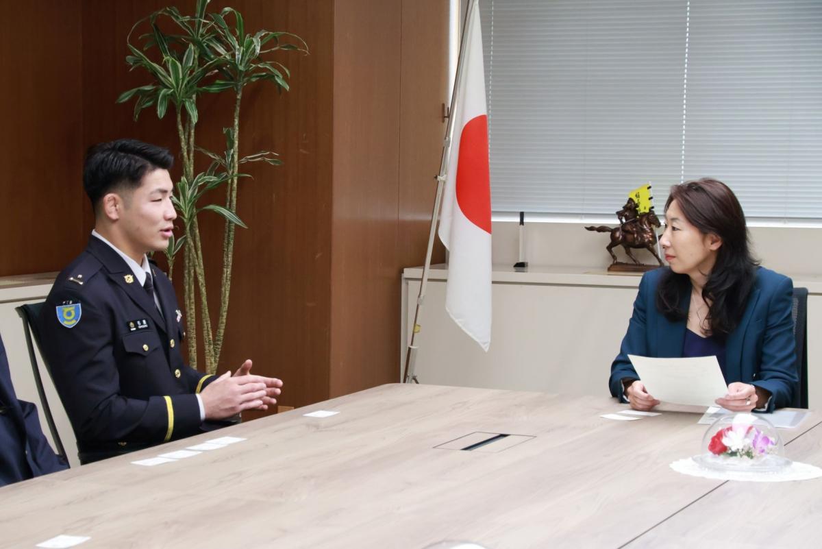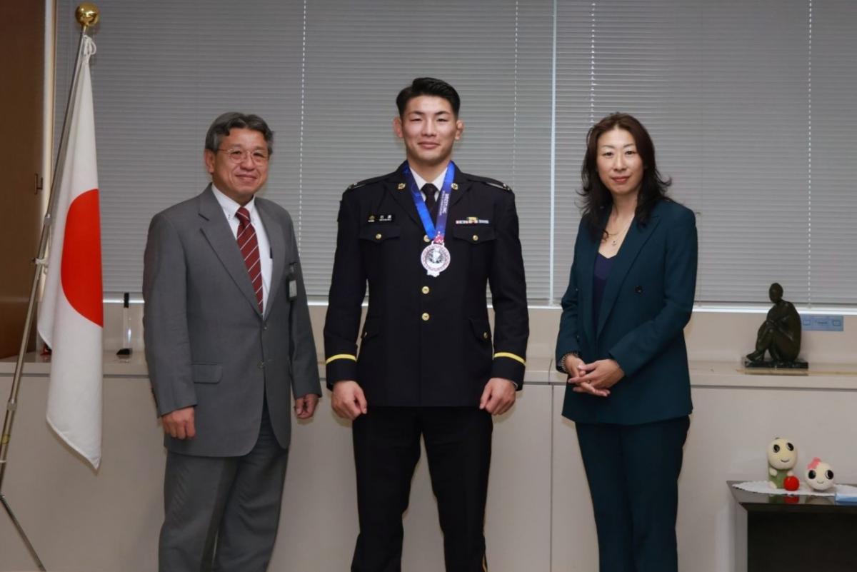 2024年パリオリンピックの日本代表であり、2025年9月にクロアチアで開催されたレスリング世界選手権の男子フリースタイル86キロ級で銀メダルを獲得した石黒隼士選手(自衛隊体育学校)の表敬訪問を受けました。