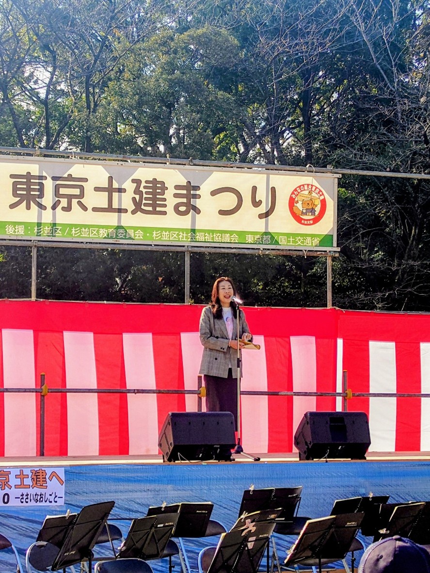 東京土建杉並支部主催の「第23回東京土建まつり」で挨拶をしました。爽やかな秋晴れの下、会場には多くの人が訪れ、ステージプログラムや様々な体験コーナーなどを楽しんでいました。