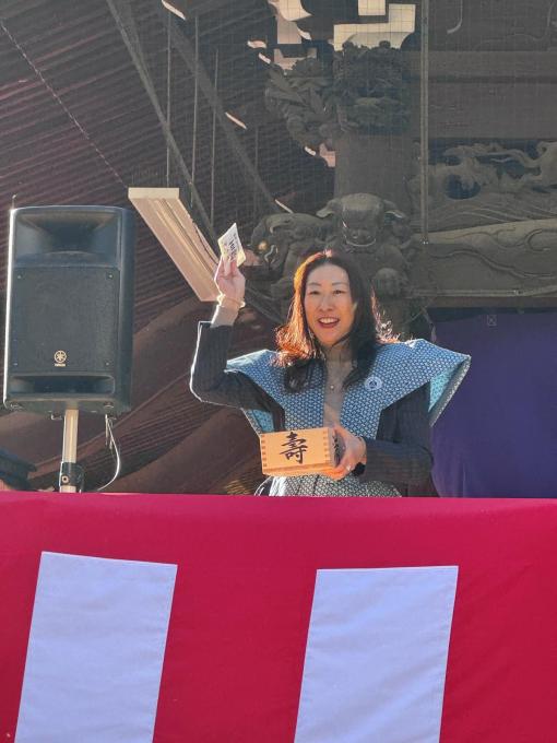当日は多くの来場者が見守る中、厄除けと無病息災を祈願し、関係者の皆さまとともに豆まきを行いました。