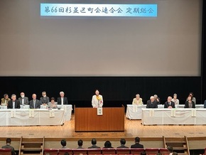 第66回杉並区町会連合会定期総会と杉並区防災市民組織連絡協議会令和6年度定時総会が開催され、来賓として挨拶したのち、町会・自治会長を5年以上務められご退任された方及び防災市民組織の代表を10年以上務められご退任された方に、感謝状の贈呈を行いました。