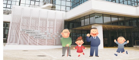 集会施設や温水プール、図書室、カフェなどがある複合施設です。