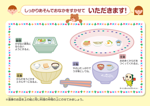 1日3回、主食・主菜・副菜を揃えて、楽しく食べましょう!