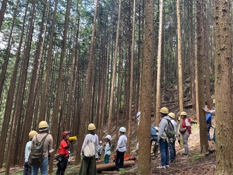 現地でさまざまな体験をし、森を手入れすることの大切さを学んでいただくことを目的に、交流自治体である青梅市で林業に携わる方々と一緒に本格的な間伐体験等を行う、体験型森林環境学習を実施しました。